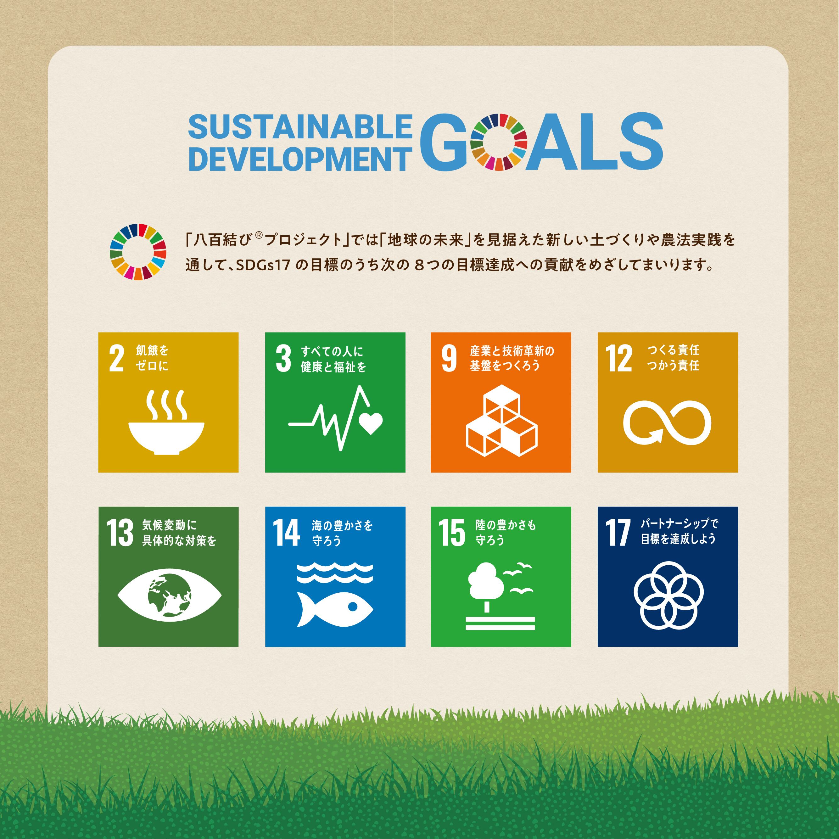 「八百結び農法® 」は、土の中にいる微生物をイキイキと活性させて土を発酵させ、作物の栄養吸収率を上げる、土づくりから作物の状態を良くしていく農法ブランドです。